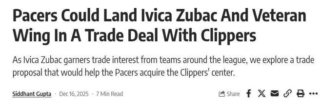 祖巴茨几乎成为快船队想要大改阵容唯一能动的球员,快船队记Iliyan Lakhani直言交易祖巴茨是快船队目前唯一的救命稻草,也是重建唯一的希望。